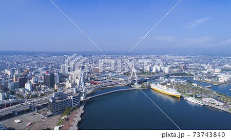 [青森縣青森市]青森灣地區清晨的風景和晴朗的天空
