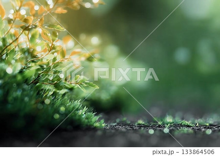 Close up macro shot Soft light to Moss on tree roots, branch and log in a green forest or moss on