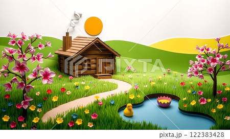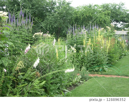 Springtime. A beautiful garden in spring with white flowers growing outdoors in green grass. Low angle of bright and vibrant forest ground with lush foliage on a summer afternoon in nature.