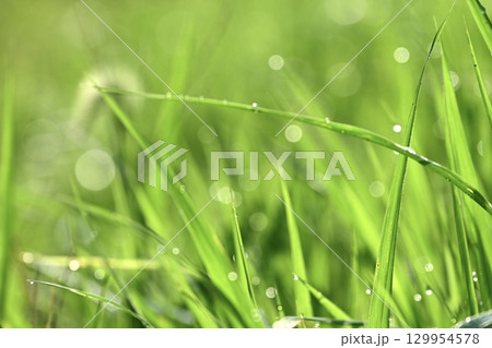 鮮綠色的葉子和花瓣在淡淡的色彩中飛舞