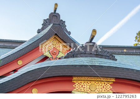 宮城縣護國神社,朱紅色的拜殿,山牆裝飾