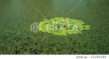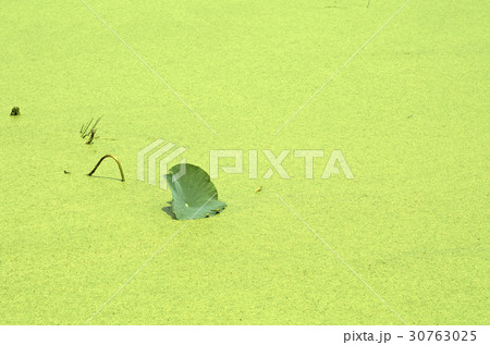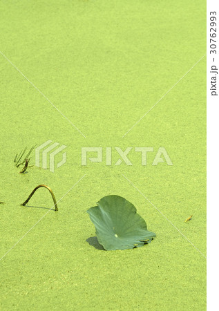 一顆已經壽終正寢的蓮米躺在浮萍裡。