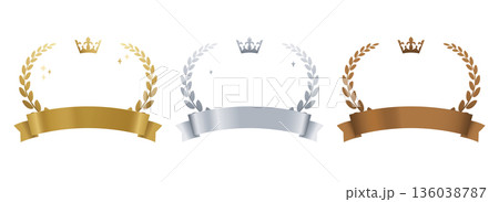奢華的金、銀、銅色絲帶徽章,帶有皇冠等級裝飾向量圖
