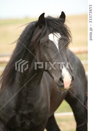 Amazing black stallion on pasturage