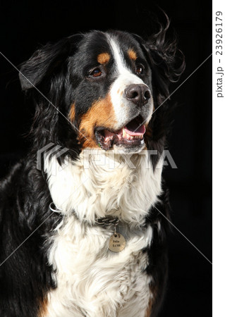 Nice bernesse mountain dog on black background