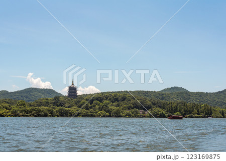 Scenic Hangzhou West Lake with Historic Leifeng Pagoda and Lush Forests