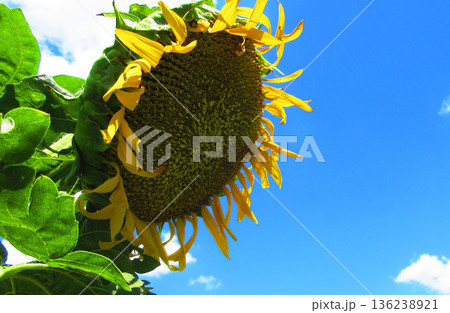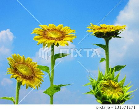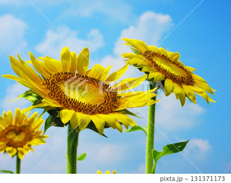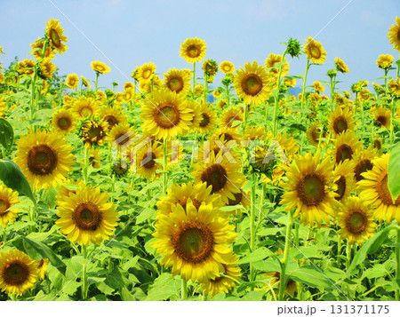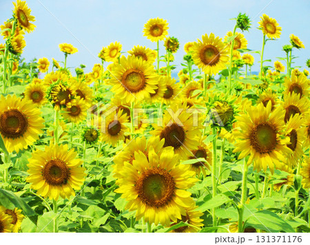 埼玉縣埼玉市見沼稻田區的向日葵迷宮田,盛開的向日葵和藍天的景色