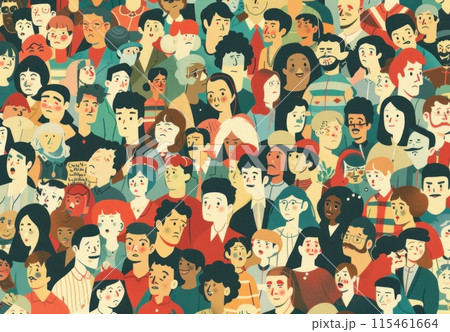 A diverse crowd of people from different ethnicities and ages were depicted in a vector illustration with flat design.