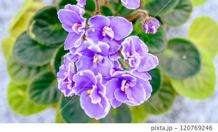 聖保羅的鮮花種植在別緻的花盆裡,淺紫色,內部
