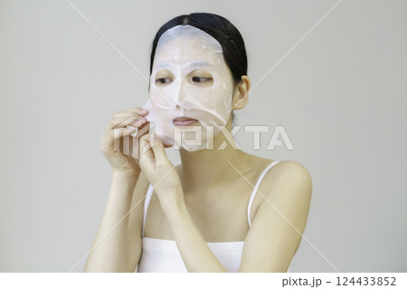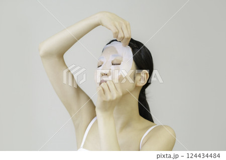 一個年輕的女人,因為面罩而擔心皮膚粗糙,沒有臉