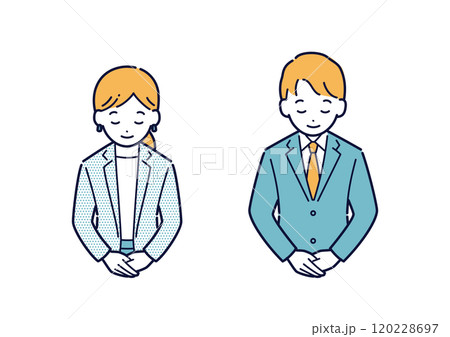 商務人士和男士鞠躬的上半身插畫素材