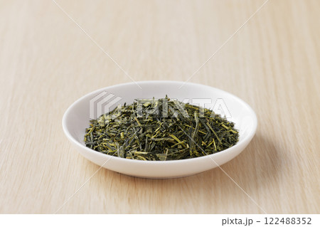 盤子上的焙茶茶葉
