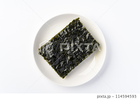 在白色背景上拍攝的韓式海藻包裹的紫菜包飯