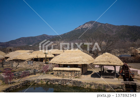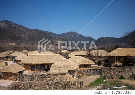 Traditional thatched roof houses and rural village scene in Nagan Eupseong, South Korea