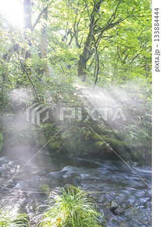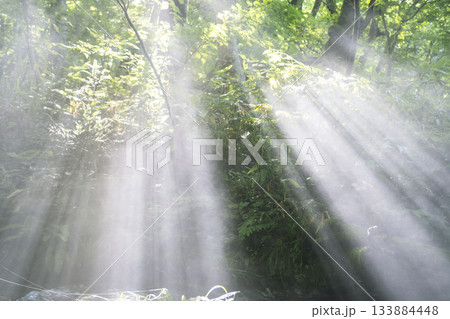 光線照射到北谷澤溪流的風景