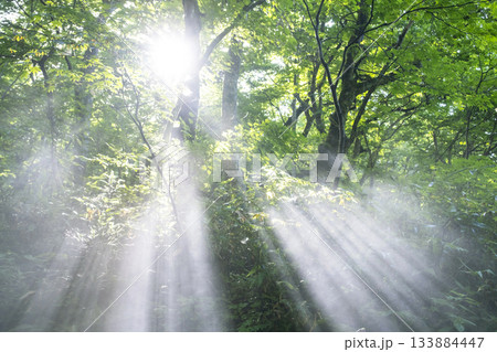清晨的陽光照進森林
