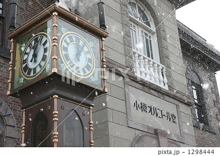 小樽童話路口和下雪的蒸汽鐘