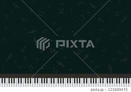 鋼琴鍵與音符圖案背景在綠色黑板上