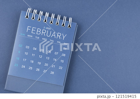 February 2025 calendar on blue color background. Desk calendar for planning.