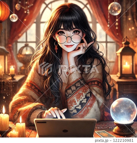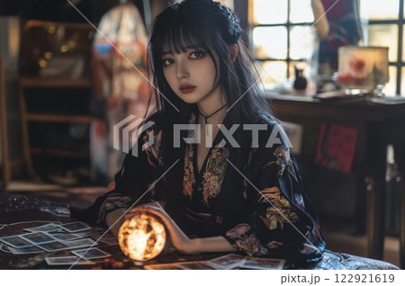發光的大水晶和算命師的日本女性“AI生成圖像”
