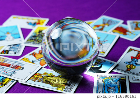 水晶球和塔羅牌。算命的圖像。人工智慧圖像。