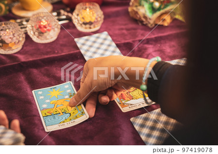 算命、發光的塔羅牌和蠟燭、精神藝術