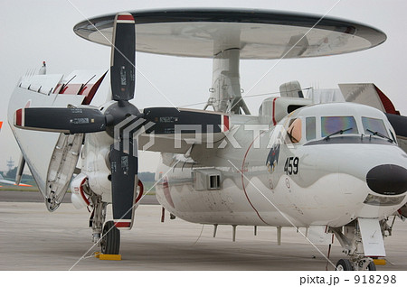 從停放的航空自衛隊預警機E-2C左前方拍攝的照片