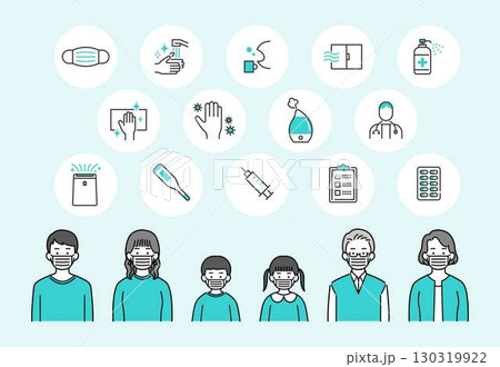 一組可用於醫療領域有關傳染病的預防、對策和治療的通知的插圖資料。
