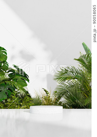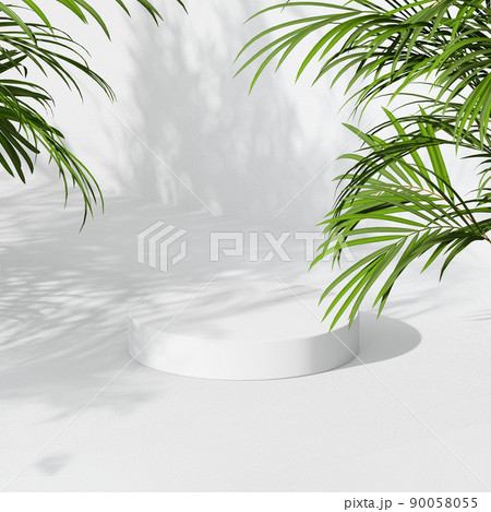 A square hole in a wooden deck, made especially for a palm tree that provides shade on a hot day for visitors to a country hotel with a pool. 3d rendering.