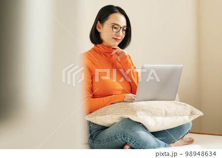 在家看計算機的婦女