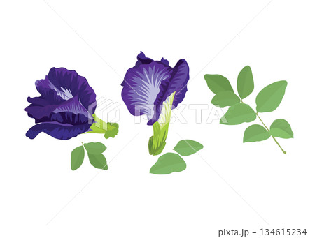 Butterfly pea flower with leaves on white background stock illustration