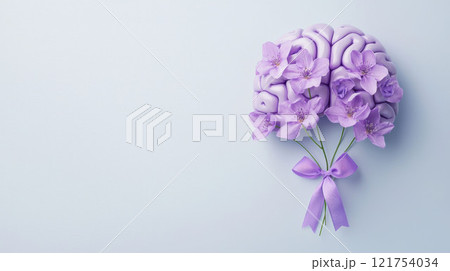 Purple day concept. Floral Brain with Epilepsy Awareness Ribbon