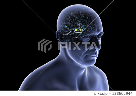 Substantia nigra, a basal banglia of the midbrain, in Parkinson's disease, 3D illustration