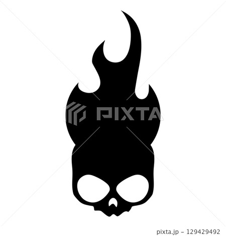 Burning skull on fire, skull icon illustration. Gothic design for prints. Comic style. Sticker for Horror or Halloween. Hand drawing illustration isolated on white background. Vector EPS 10