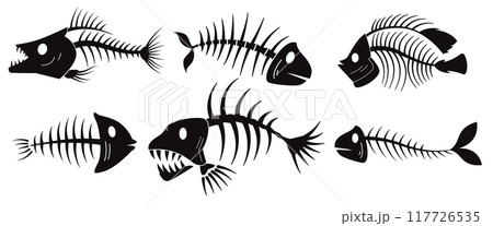fish bone set collection dead bone river and sea fish black silhouette skeleton