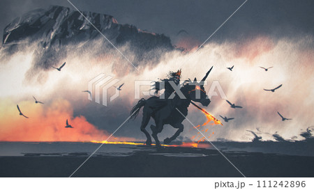 Scary monster with a burning candle in his hands.Halloween background.GenerativeAI.