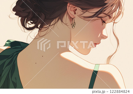 一位身著日本傳統服飾的女子靜靜地低下頭,露出頸背