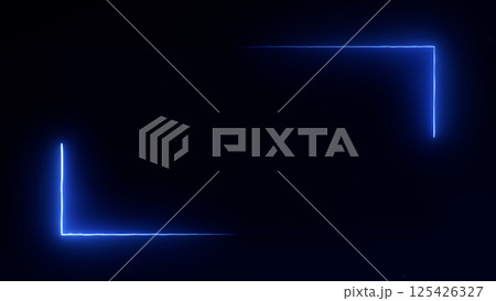 Blue neon frame illustration with starry particles on cosmic background in 4K. Ideal for science, tech, sci-fi projects, backgrounds, or overlays in digital art.