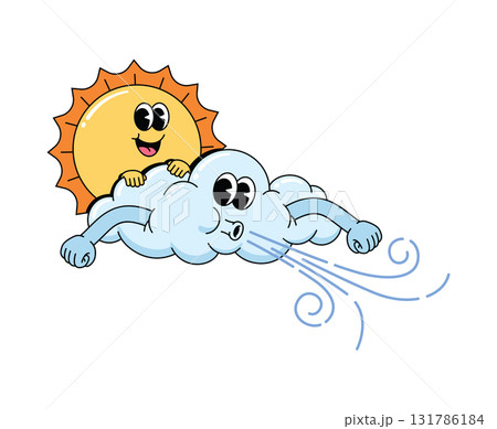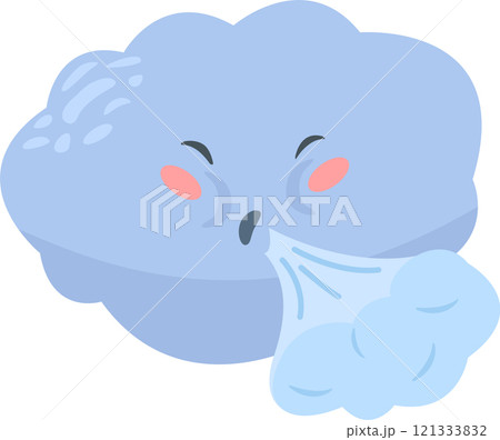 Cartoon cloud is blowing cold wind with its mouth, creating a gust of air, ideal for representing weather, meteorology, winter, or a funny character