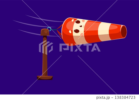 Cartoon funny weather character of windsock or wind cone with cute face, vector icon. Weather character or emoji emoticon of windsock or wind direction flag for kids or children kindergarten design