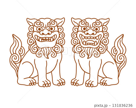 沖繩傳統護身符「Shisa」一對的彩色插圖