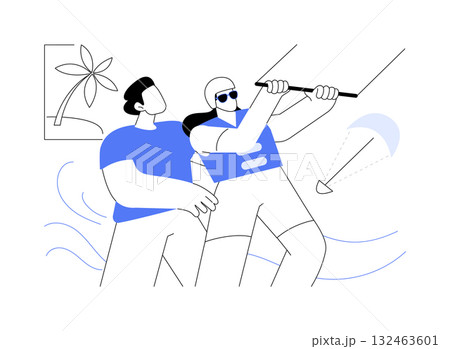 Kitesurfing instructor isolated cartoon vector illustrations. Young girl learns kitesurfing with instructor, extreme sports vacation, watersports traveling, summer holidays vector cartoon.
