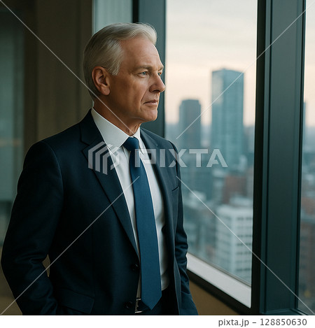 成熟企業家滿港城市天海行|高品督導西服形象展示|成功商業人士一般辦公室場景