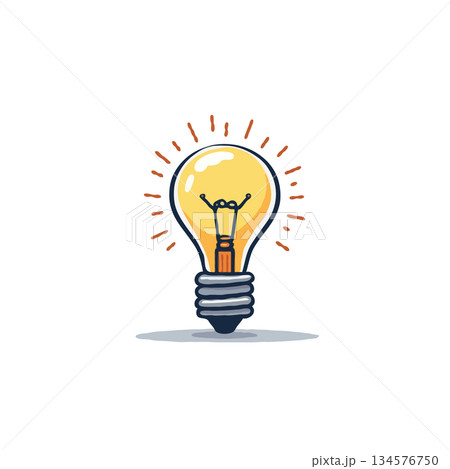 燈泡圖示。燈亮時靈感的象徵。手繪向量插圖。