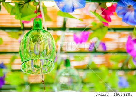 夏天在藍天中搖曳的波點風鈴 背景素材