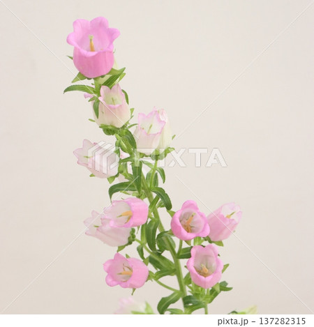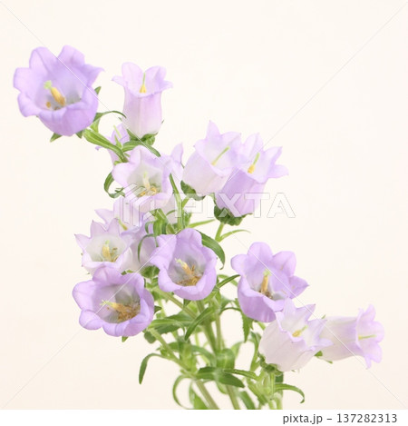 Aesthetic spring bouquet featuring soft pastel bellflower stems with trumpetshaped floral displays