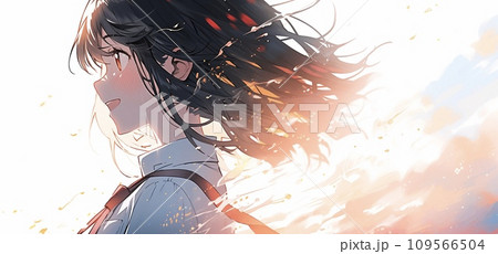 女學生身穿水手服,邊走邊抬頭,背景是銀杏。