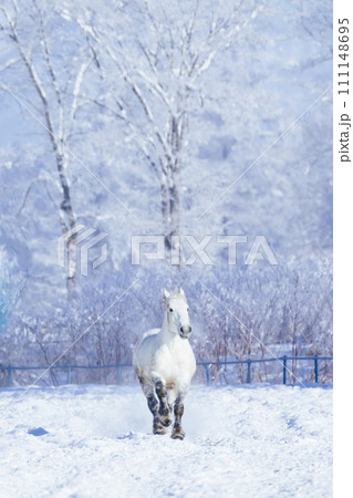 白馬在雪原上奔跑