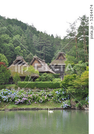 飛驒之裡的茅草屋頂和山牆屋頂的古老民宅景觀