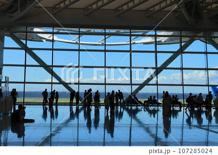從羽田機場第 2 航廈國際線區域望向跑道的旅客 望向跑道的旅客剪影